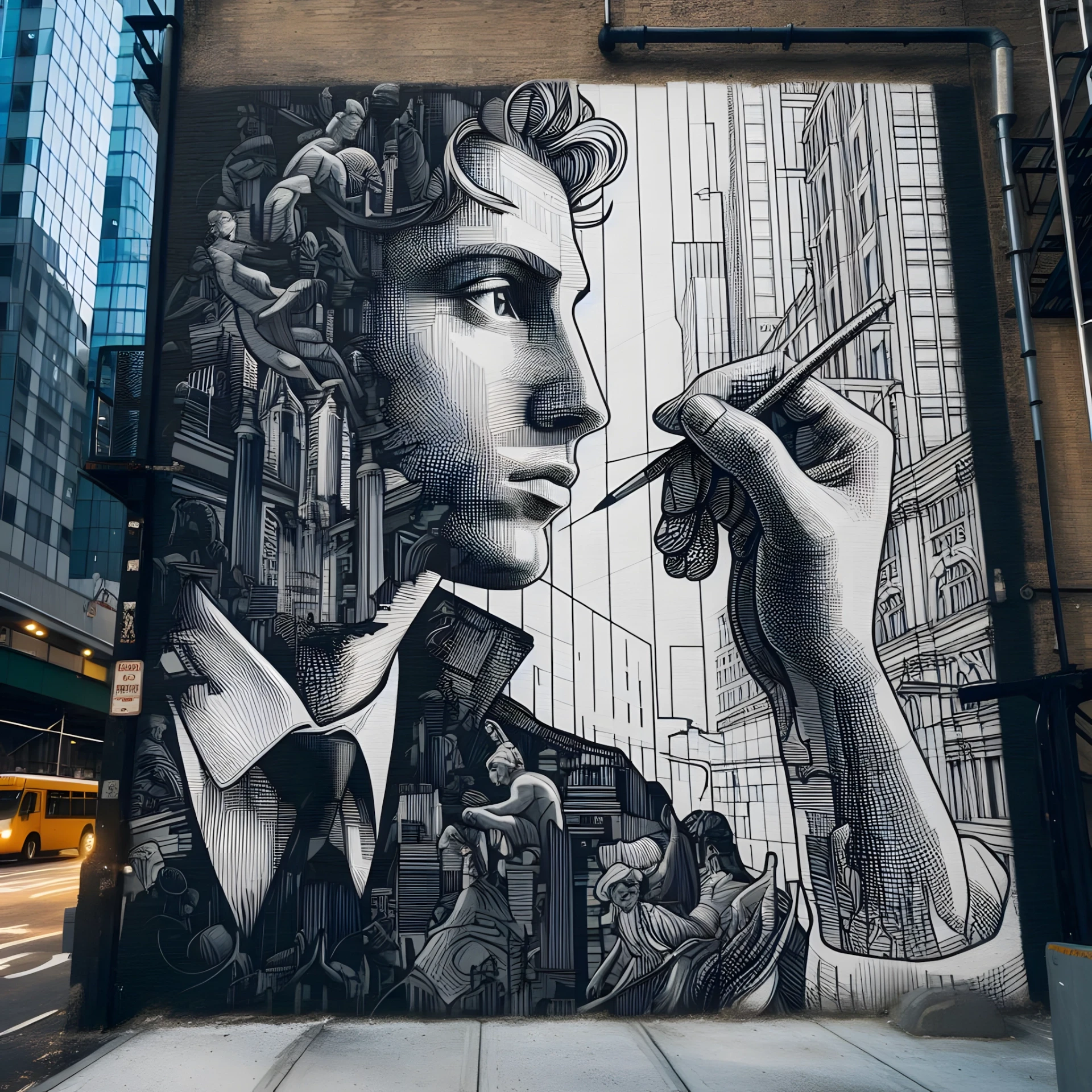 O grafite, surgido como forma de expressão social e cultural nas ruas, evoluiu para uma prática artística diversa. Tradicionalmente, o grafite era associado a letras estilizadas e pinturas elaboradas, mas com o tempo, a simplicidade do LineArt foi incorporada como uma forma de expressão alternativa. Artistas começaram a explorar o uso de linhas puras para criar obras que, mesmo sem o uso de cores, transmitissem profundidade e movimento.